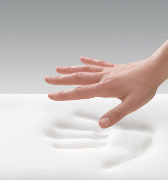 La espuma viscoelástica, posee un efecto memoria que le consiguió un efecto de adaptación al cuerpo de manera perfecta. Es por tanto capaz de ofrecer un confort incomparable, ya que cada parte del cuerpo es soportada en función del peso, de la temperatura y de la presión ejercida, impidiendo posturas no naturales que obligan al cuello, lumbares y cervicales a estabilizar contraídos durante el descanso .