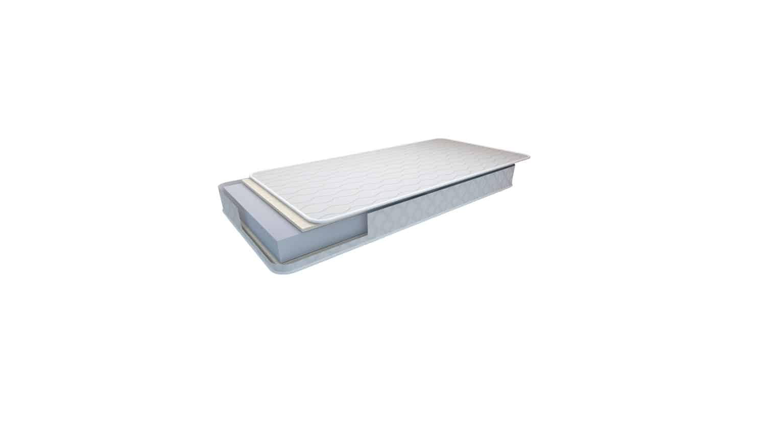 Colchón con núcleo de 10 cm de grueso, fabricado con poliuretano CONTAC PLUS de alta densidad que favorece la higiene postural del bebé y su correcto desarrollo durante su descanso.